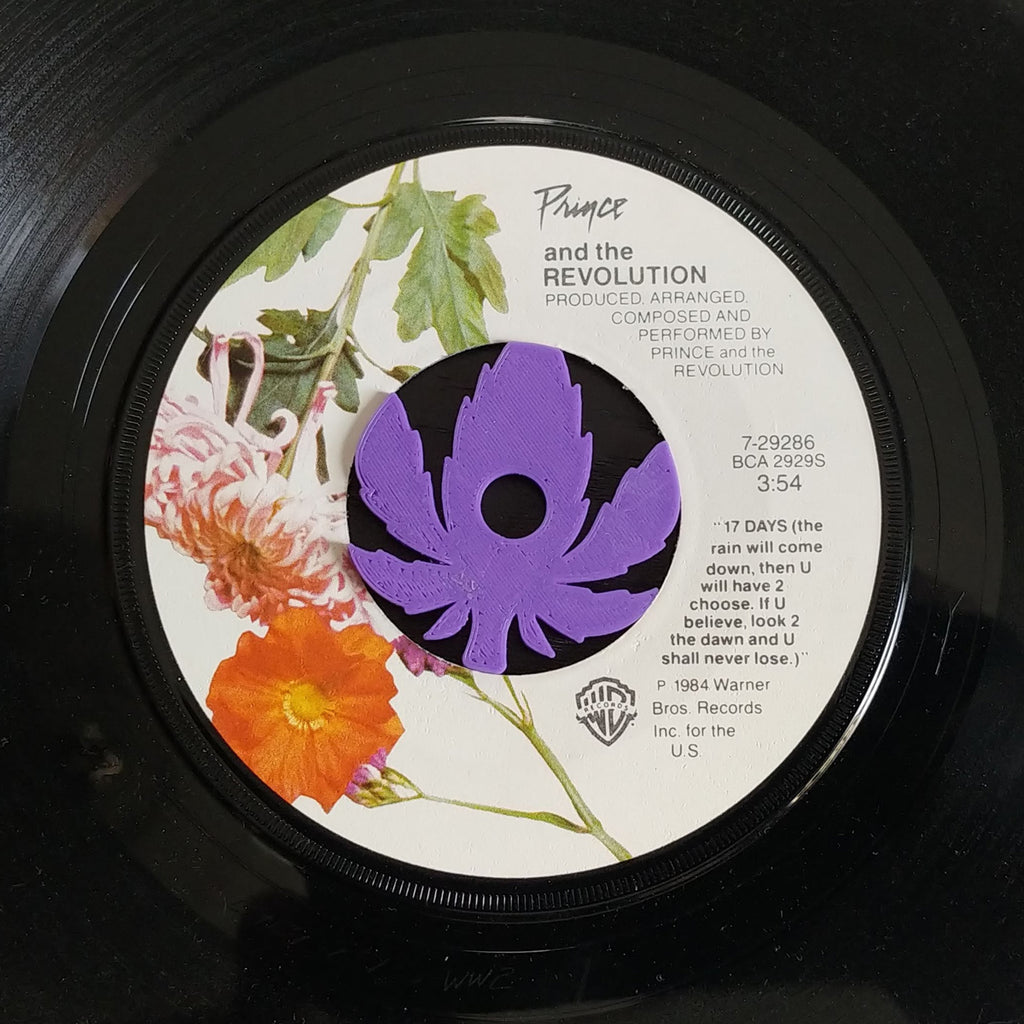 Custom made 45 RPM record adapters. Fits 7" vinyl records with a large center hole. 3D printed ABS.